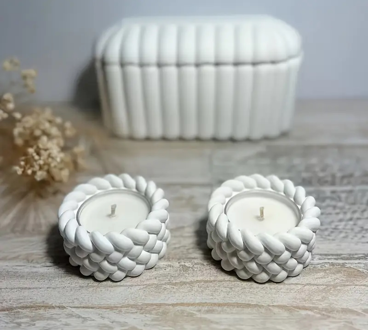 pleteným vzorem působí čistě a nadčasově. Vosk je 100% sojový a v kombinaci s